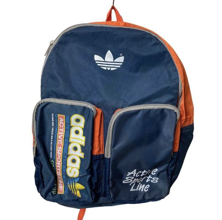 - グッドデザイン!レトロアディダスミニリュック トレフォイルロゴネイビー×オレンジ