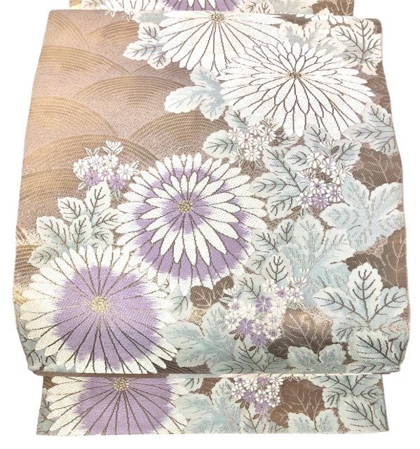 > 袋帯 美品 ゴールド 草花金 藤色 薄紫 薄ピンク 淡色 リサイクル 【中古】