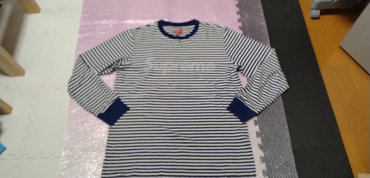 > SUPREME border LOGO long TEE シュプリーム ボーダー ロゴ ロンTシャツ 長袖 M 白 × 青