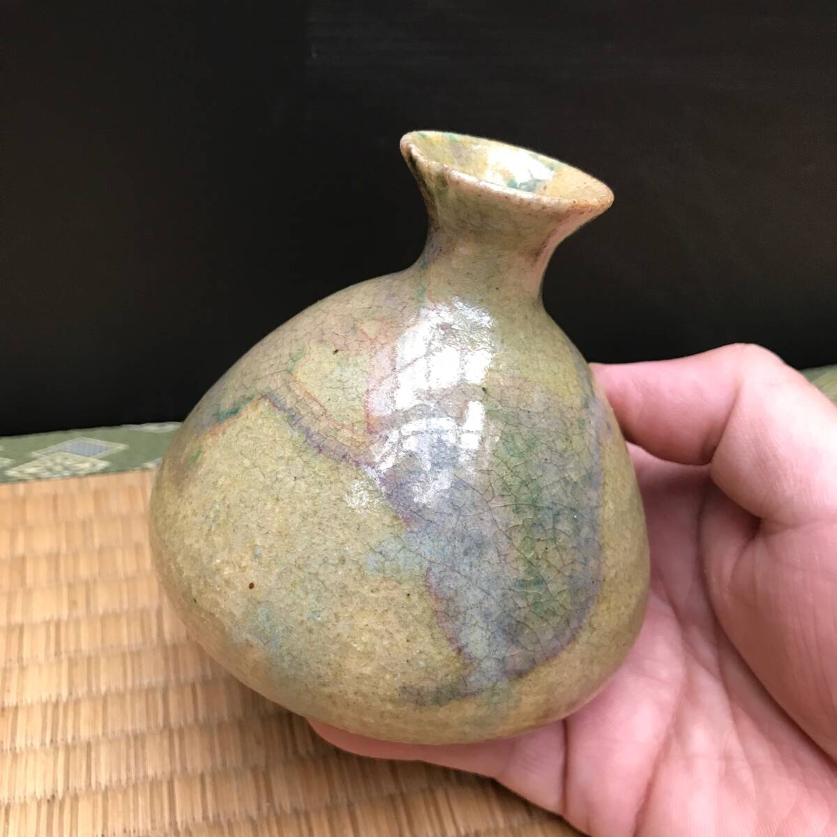 - 黄瀬戸釉油壷形の徳利、口緑は窯キズ 一輪挿し 花入れ 花瓶(R60325_C)