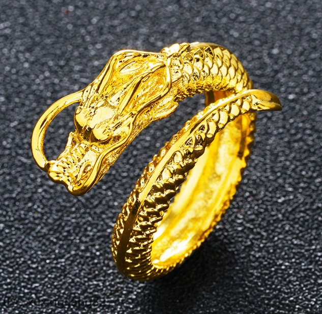 - 華奢贅沢♪ 覇気 龍頭 指輪 メンズ 24KGP ベトナム砂金 メッキ加工 リング アクセサリー 誕生日 ギフト 開口調節可
