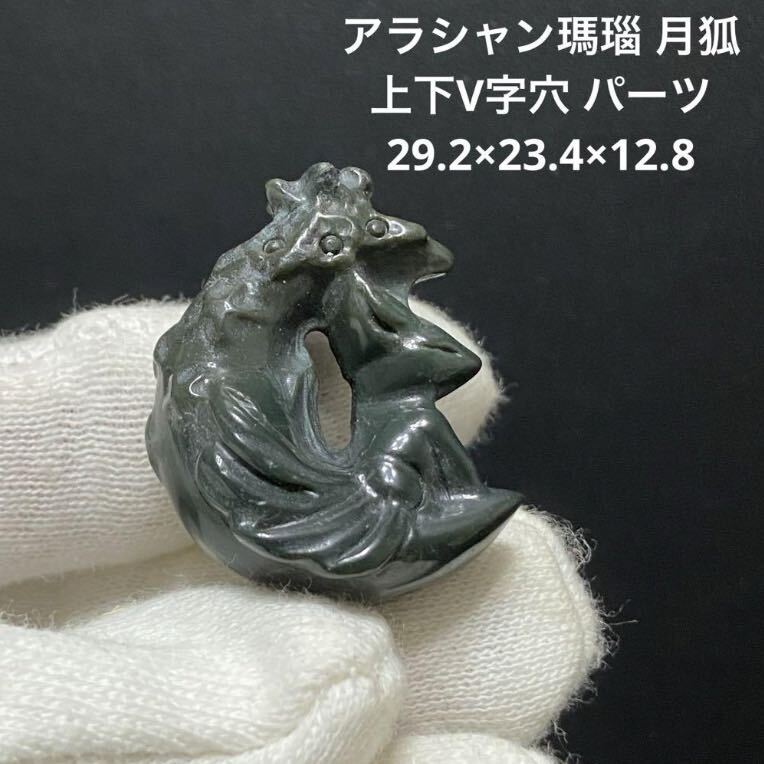 - B854 アラシャン瑪瑙 月狐 上下V字穴 パーツ 29.2×23.4