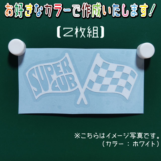 > チェッカーフラッグSUPERCUB①ステッカー2枚組 文字絵柄だけ残るカッティングステッカー・スーパーカブ・リアボックス・サイドカバー