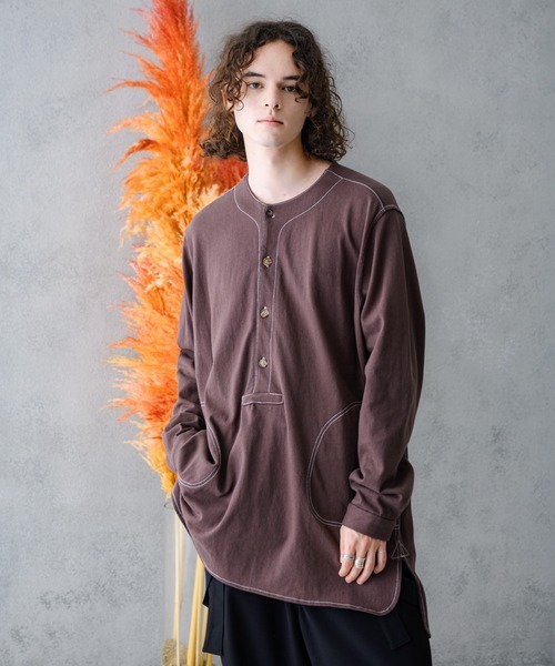 - CASPER JOHN キャスパージョン プルオーバーカットソー ヘンリーネック BRW サイズM