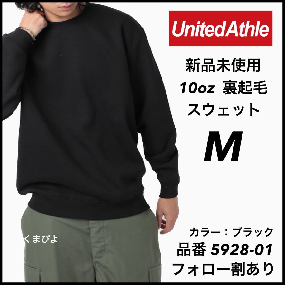 - 新品未使用 UnitedAthle 10oz 裏起毛 無地スウェット 黒 ブラック M サイズ ユナイテッドアスレ 無地トレーナー
