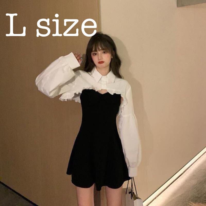 - ワンピース アシンメトリー ミニスカート ミニワンピ ブラウス セットアップ L