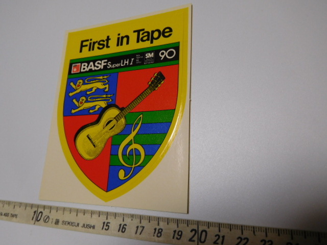 - 希少レア☆彡新品在庫品・BASF・バスフ・カセットテープメーカー・エンブレム型ステッカー(8.5㎝×11㎝)First in Tape・当時物・レトロ