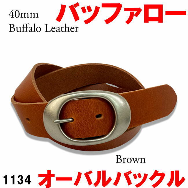 - ブラウン バッファロー レザー 1134 オーバルバックル 日本製 ベルト