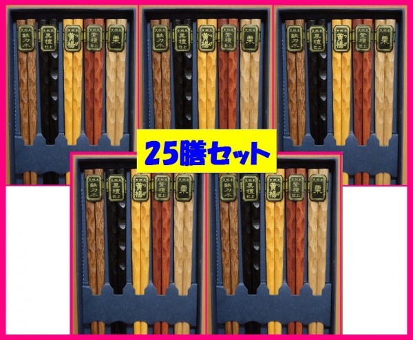> 【送料無料】 ★箸 25膳「鉄刀木・黒檀・黄楊・紫檀・栗」 箸 天然木 (亀甲 乱彫 乱堀彫の箸) 5膳x5★黒檀仕上げ,紫檀仕上げ:箸 お箸 和箸