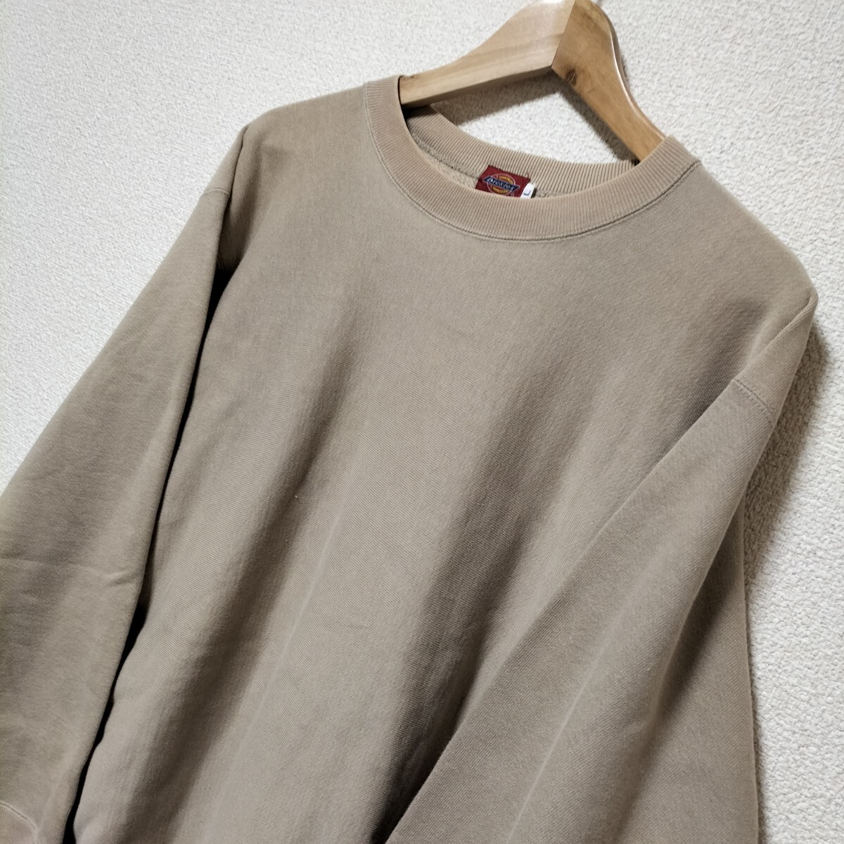 > ★Dickies スウェット トレーナー プルオーバー リバースウィーブライク 無地 裏起毛 ベージュ サイズL オールド ディッキーズ 古着 USED