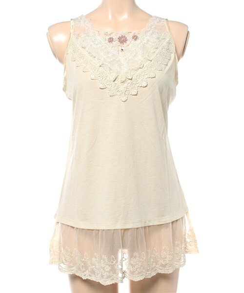 > 482◇Vレースお花ロングタンク 生成り キナリ axes femme アクシーズファム TS1X310 タンクトップ