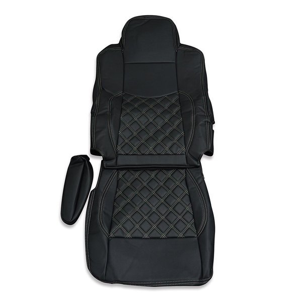 - 三菱ふそう スーパーグレート シートカバー 艶無し 黒 運転席用ダイヤモンドブラックステッチ AP-CV005R-BK