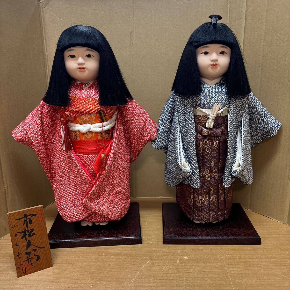 - TA-653☆140サイズ【小出松寿 作】日本人形 着物 昭和レトロ 女の子 男の子 男女ペア 市松人形 アンティーク 抱き人形 ?