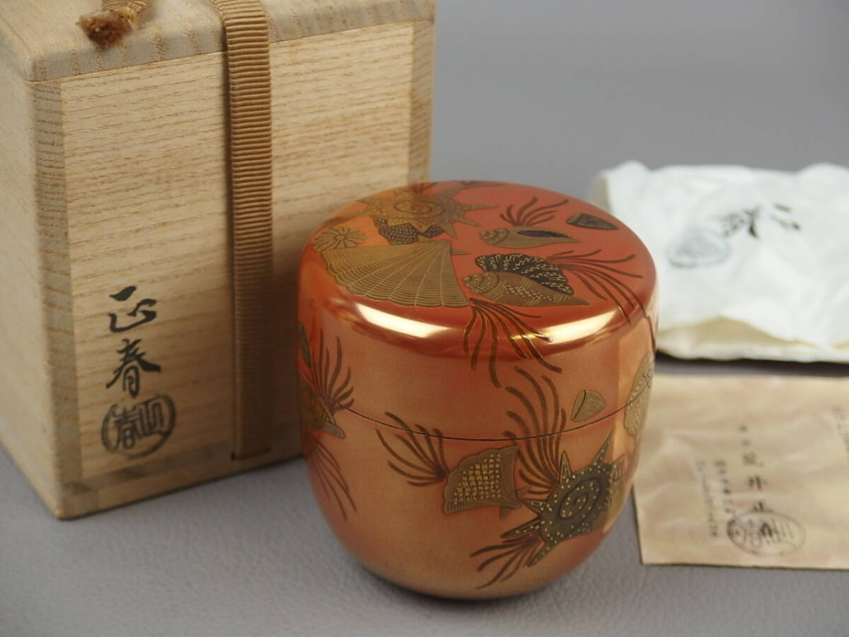 - 【骨董・茶道具】★荒井正春★★金銀蒔絵螺鈿貝尽棗 fj067yl21.8 梨地
