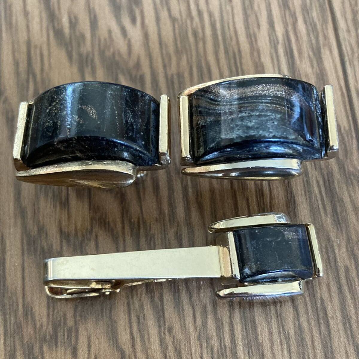 - 送料無料 US ヴィンテージ Anson ネクタイピン カフリンクス ブラックストーン