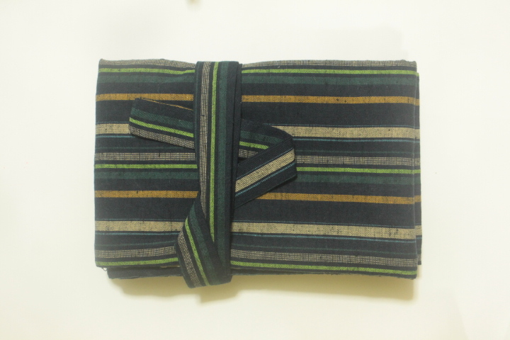 - 木綿 厚 拵え袋 紺×緑×茶縞 袋全長85㎝×13㎝「拵え全長:62㎝~66㎝に適合 」☆結解容易 保護保管に最適 時代風 特注刀袋 真剣用 ☆新品