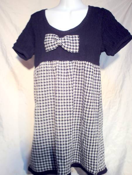 - ★可愛い系★千鳥柄★リボン★ふんわりニットワンピース★M