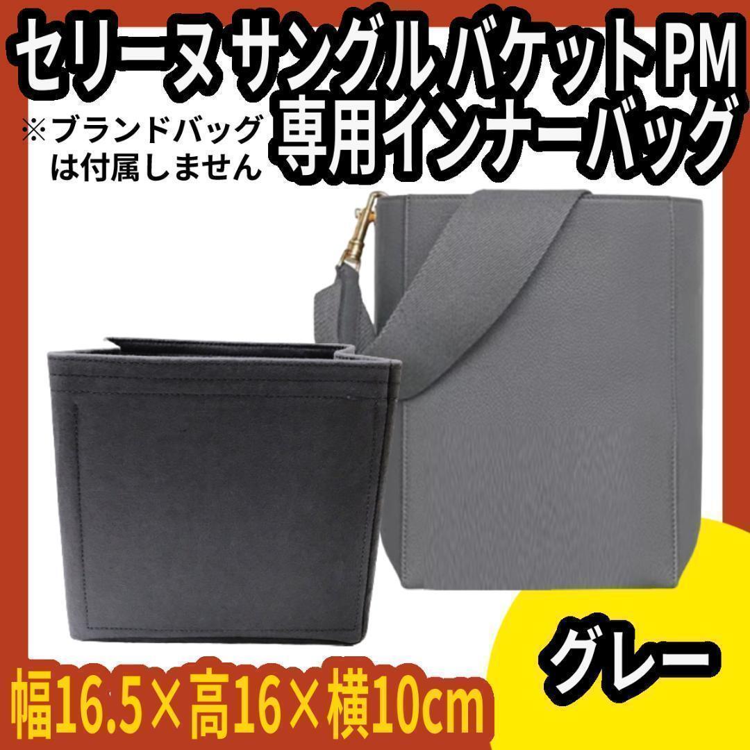 - バッグインバッグ★セリーヌ★サングル★バケット★PM★灰色★大容量ポケット★