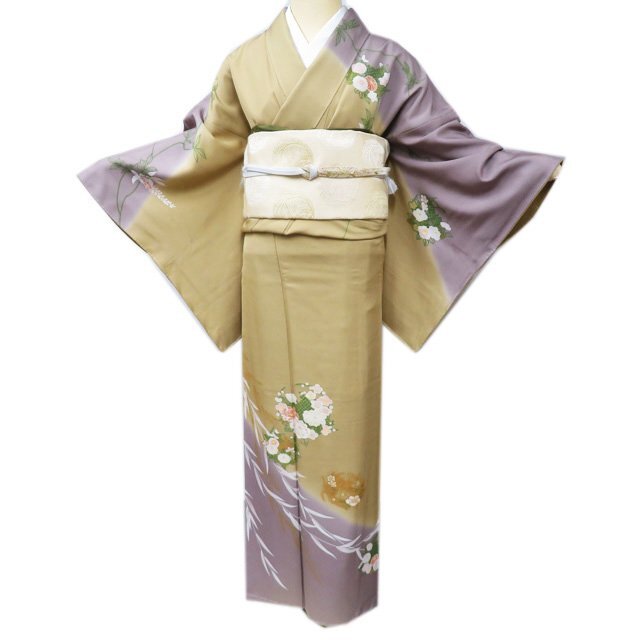 > 訪問着 着物 未使用 正絹 袷 フォーマル 花の図 楊桃色 胡桃染色 多色 身丈169cm 裄69.5cm L トール きもの北條 A1005-12