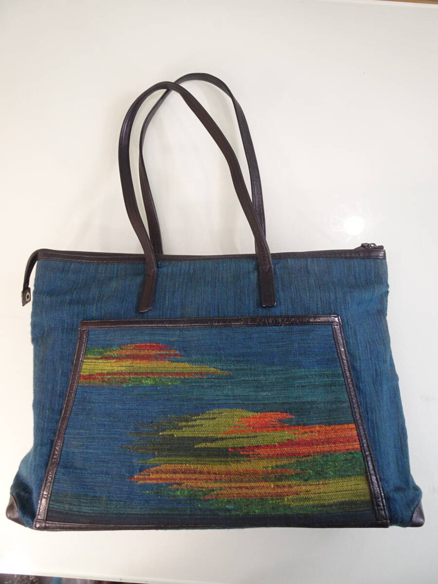 - 北海道 手織つむぎ 毛100% 優佳良織工芸館 ショルダートートバック 45x9x30cm 北海道 ユーカラ 中古