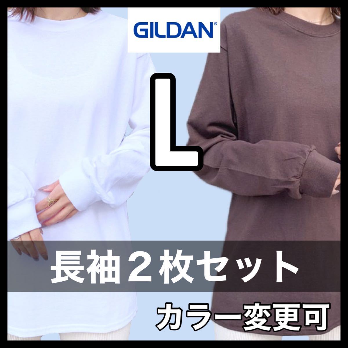 - 新品未使用 ギルダン 6oz ウルトラコットン 無地 長袖Tシャツ ロンT 白 ホワイト ダークブラウン 2枚セット Lサイズ ユニセックス GILDAN