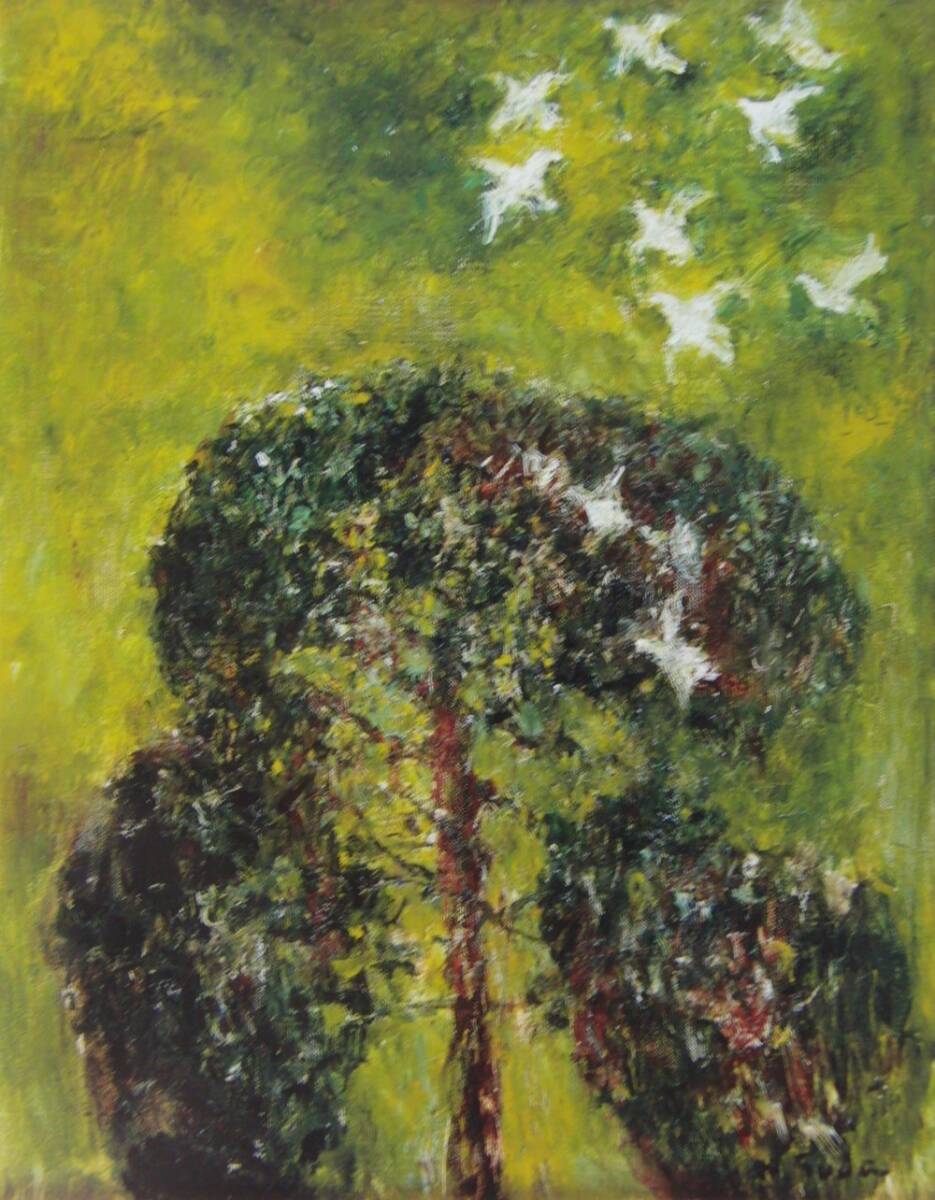 - 須田壽「鳥の集まる樹」 希少画集・額装画、日本製新品額縁、状態良好、送料無料