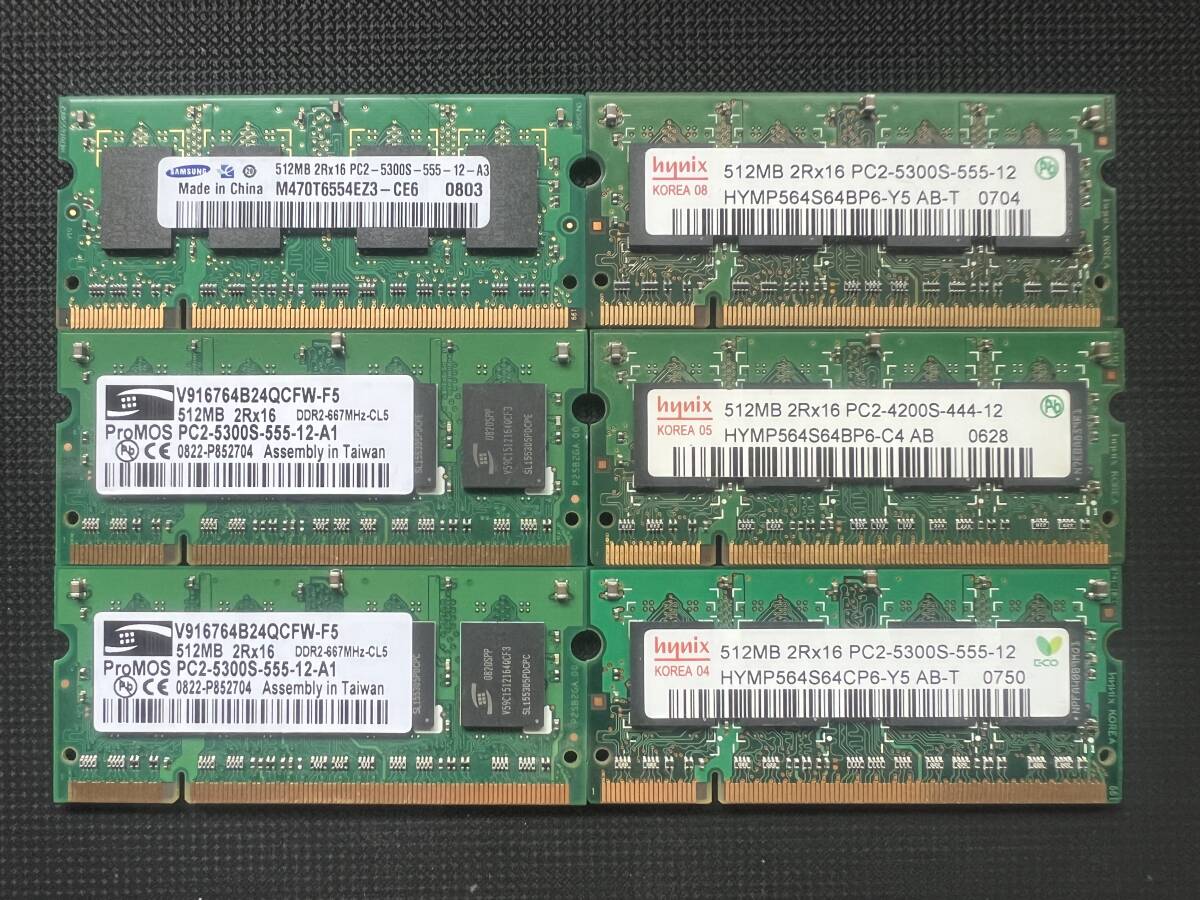 - ★☆[メモリ] SAMSUNG M470T6554EZ3-CE6 ProMOS V916764B24QCFW-F551 hynix HYMP564S64BP6 512GB 計6枚☆★