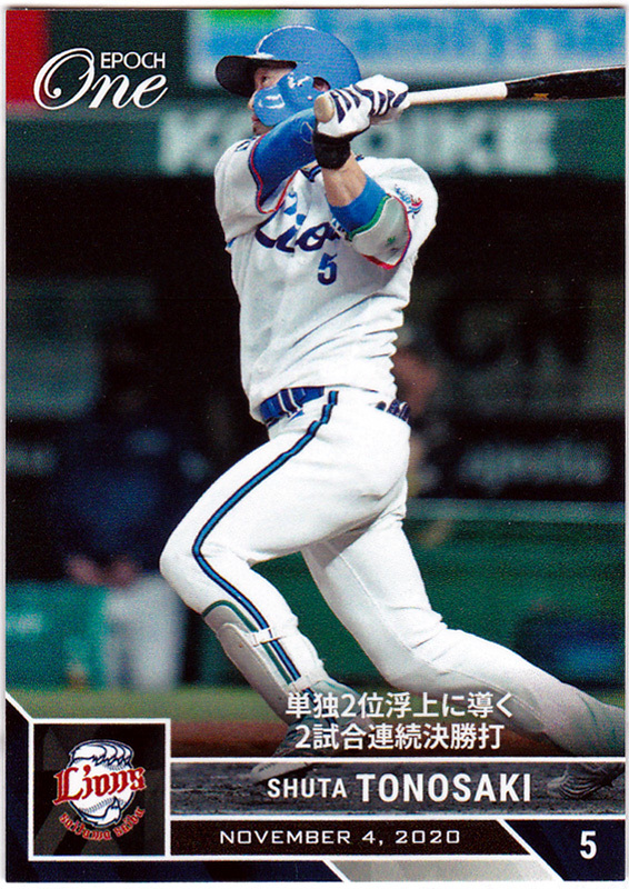 > 2020年 EPOCH エポックワン No.630 外崎修汰(埼玉西武ライオンズ) 11月4日単独2位浮上に導く2試合連続決勝打 24枚限定 野球カード