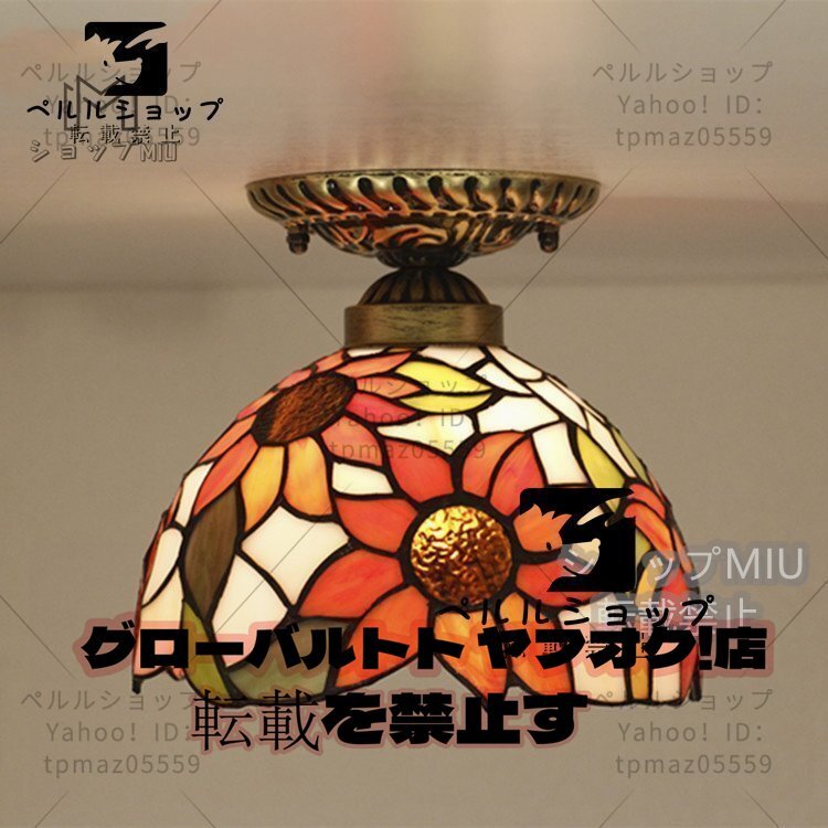 > ★芸術品★新品★ステンドランプ 照明 シーリングライト ステンドグラス アンティーク 花柄レトロな雰囲気 ティファニー技法