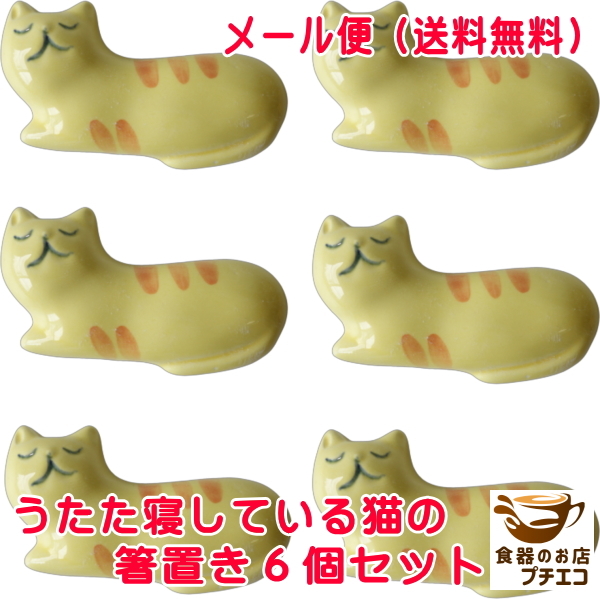 - 送料無料 箸置き 箸休め うたた寝している猫 6個 セット メール便 ネコ 日本製 美濃焼 カトラリーレスト 陶器