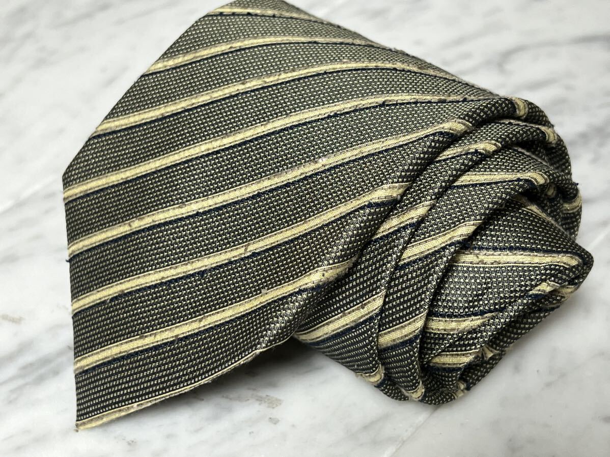 - 770円~ レノマ ネクタイ カーキ系 グリーン系 ストライプ ダメージ加工 (GREEN、B2)