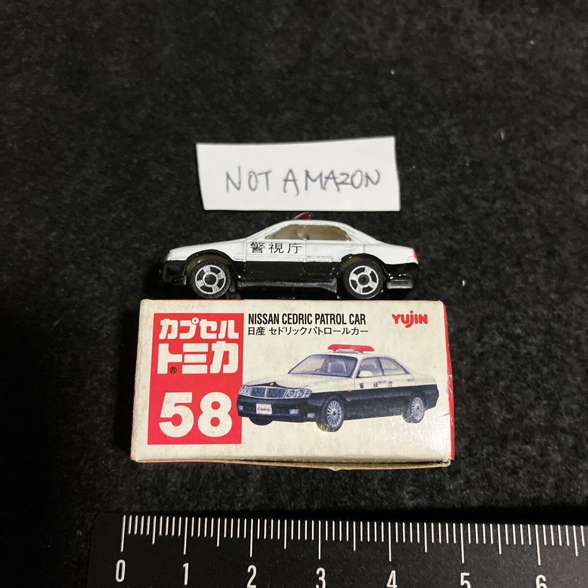 - レトロ yujin カプセルトミカ 日産 セドリック パトロールカー トミカ 58 未使用ですが、経年による多少のベタつきあり、箱傷み