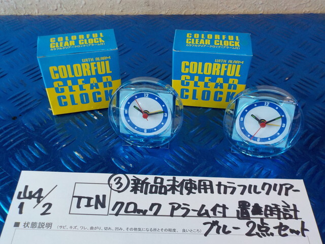 > TIN●○(3)新品未使用 カラフルクリアー クロック アラーム付 置時計 ブルー 2点セット 6-4/2(あ)