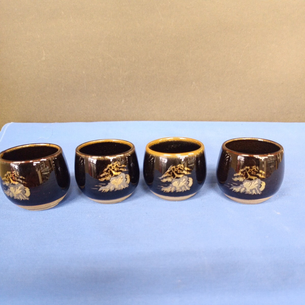 - 昭和レトロ■金彩 松 盃(おちょこ)四個セット
