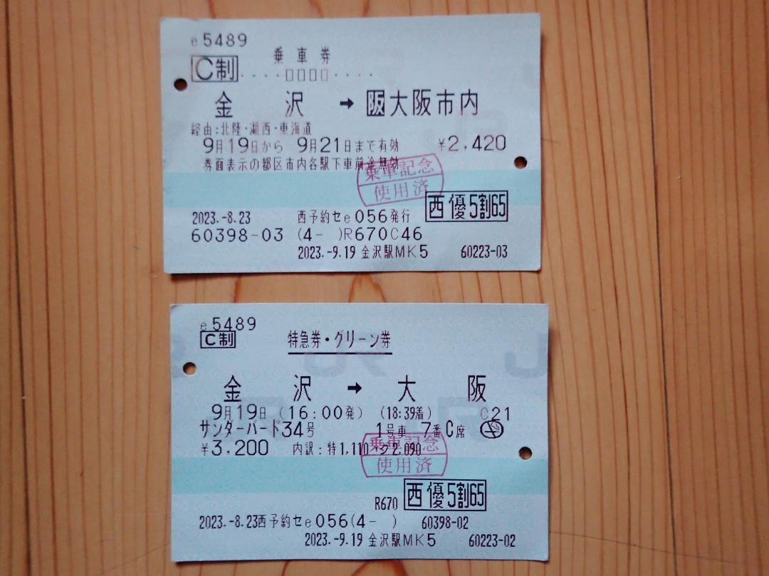 - ◆JR西日本 北陸本線 特急サンダーバード 切符 マルス券 乗車記念 乗り鉄 旅鉄 鉄旅◆