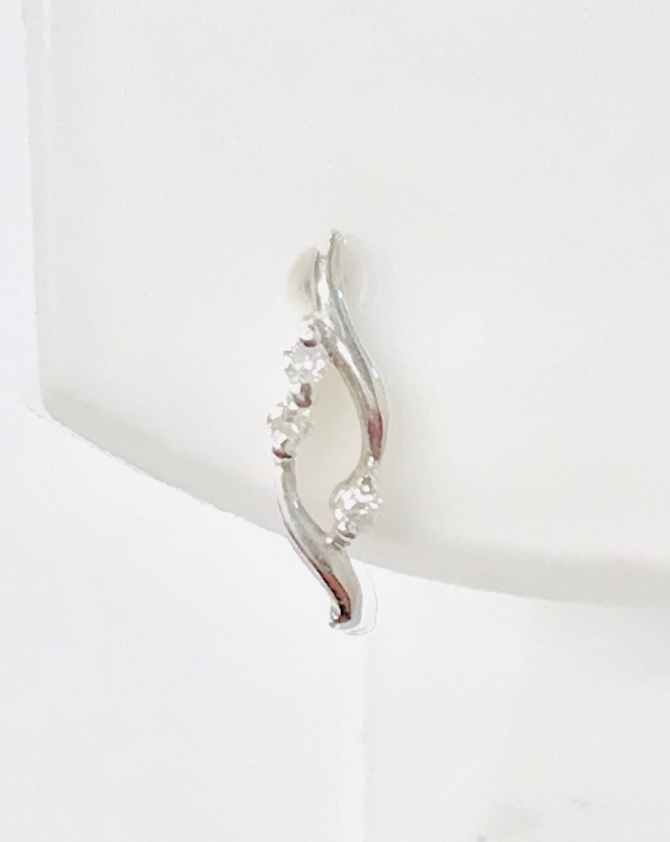 - K14WG ホワイトゴールド 3Pダイヤモンド デザインピアス qoj.YPB54