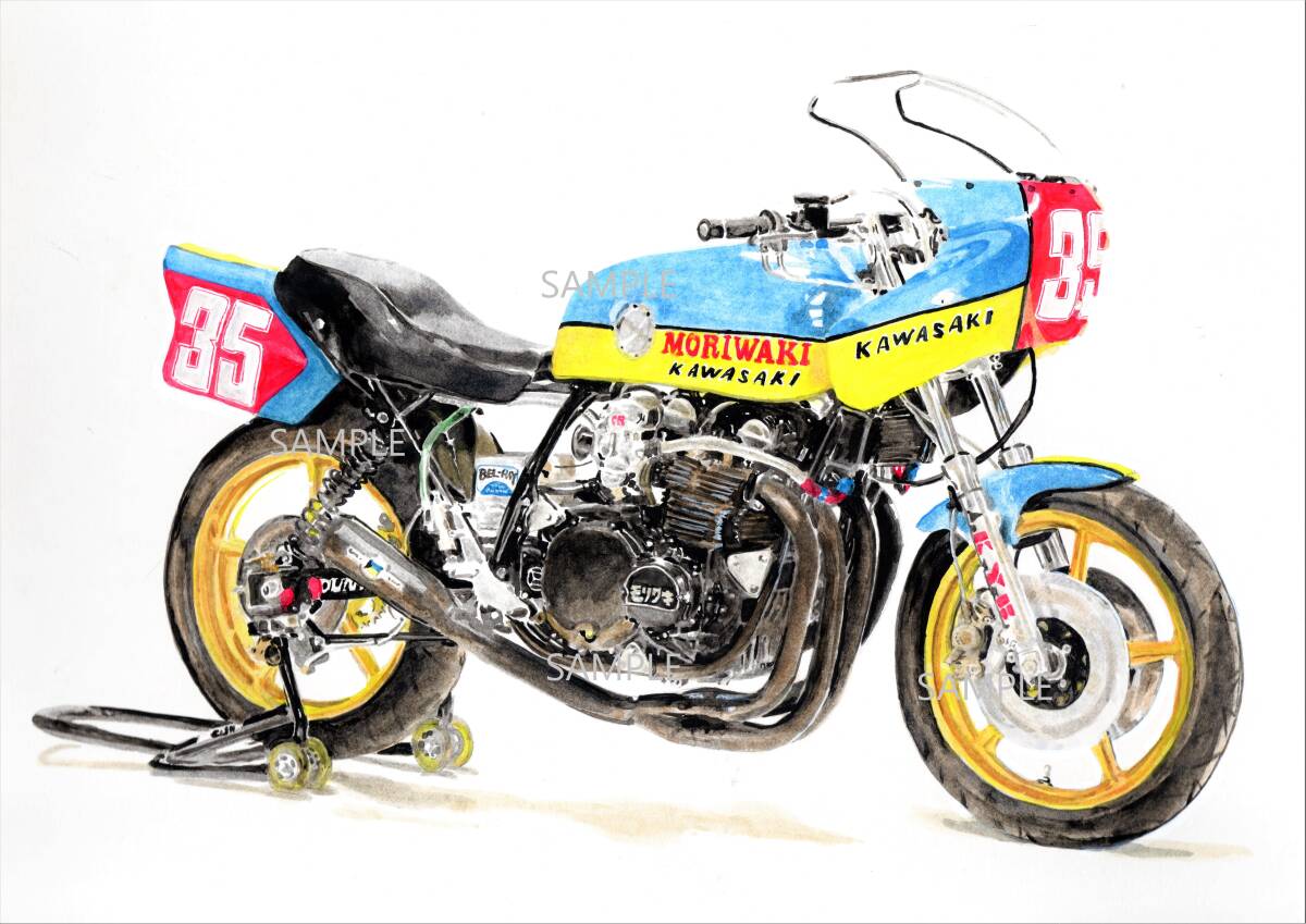 - A4プリントです カワサキ モリワキZ クロスビーレプリカ 水彩画 バイクイラスト