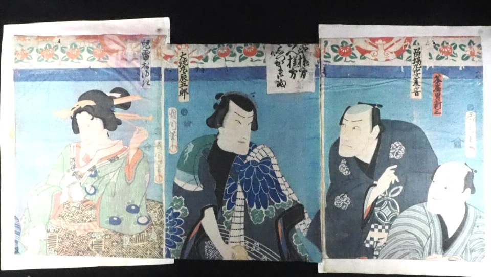 - 浮世絵木版画 錦絵 役者絵 豊原国周 「大蛇丸辰五郎」3枚綴り SMN604(18-11)