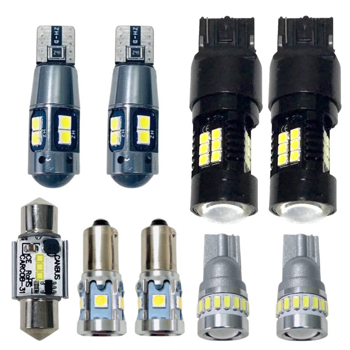 > 鬼爆 R34 スカイライン 4ドア 純正球交換用 LED ルームランプ 車内灯 バックランプ ポジション球 ナンバー灯 ウェッジ バルブセット