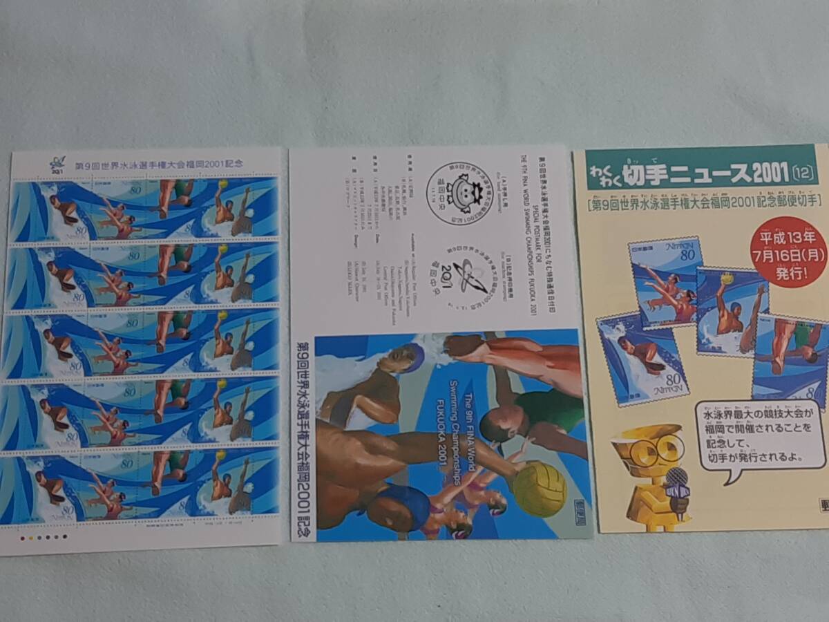 第9回世界水泳選手権大会福岡2001記念 H13 切手シート1枚と解説書とわくわく切手ニュース