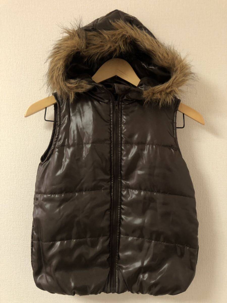 - ファー付き ブラウン 中綿ベスト 140センチ