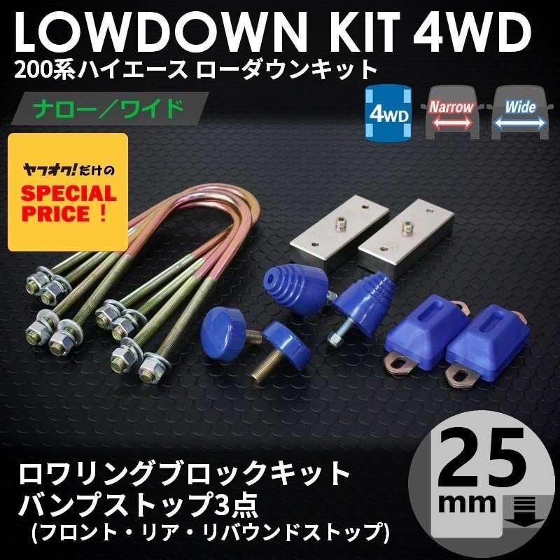 > □ティスファクトリー□ ハイエース 200系 1型-7型 4WD ローダウンキット 1 [ブロック25mm (1インチ) + バンプ3点] ワゴンGL ナロー ワイド