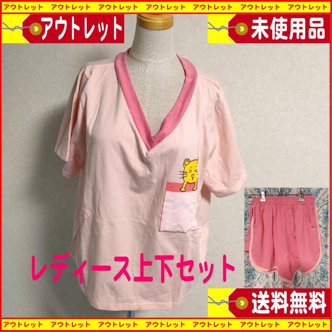 > アウトレット未使用品 レディース半袖・ショートパンツ上下セット サイズM 綿100% 送料無料・匿名配送 かわいい! 宅人衣居