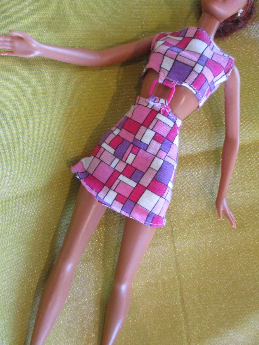 - ■⑩きせかえ お洋服【 セパレート ミニ丈 ワンピース ピンク系 ブロック模様】着せ替え人形 用 バービー;タグ