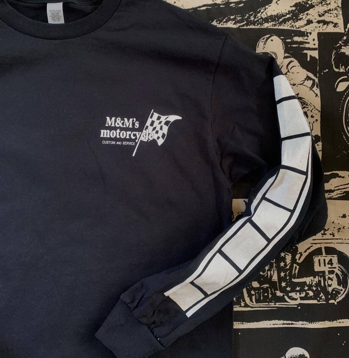 - M&M's motorcycle ロングスリーブTシャツ ブラック/ホワイト Lサイズ VMXスクランブラーDT1XT500XT250SR400世田谷ベース