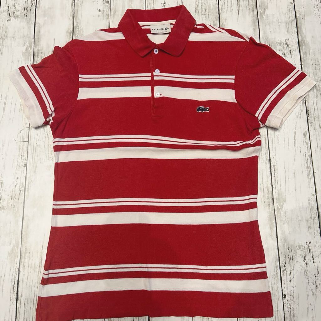 - FRANCE製 LACOSTE ラコステ 刺繍 ワッペン ボーダー 半袖ポロシャツ