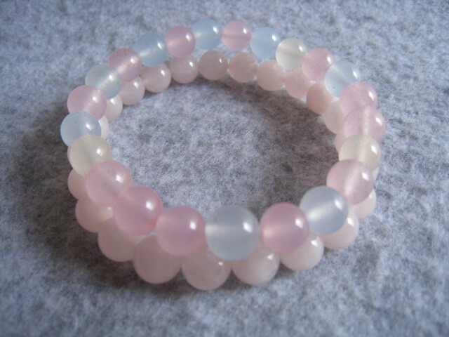 - [SAMU]綺麗!!可愛い ピンクと青色 天然水晶珠8mm 二連ブレスレット 新品!