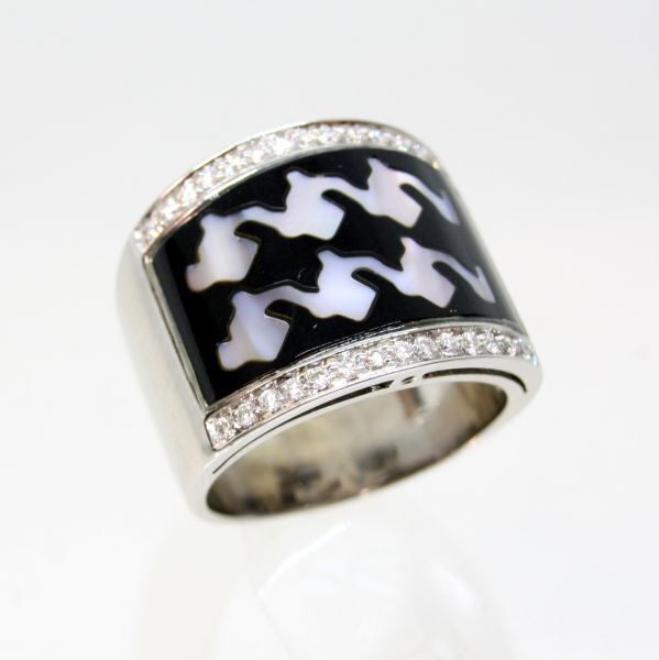 - ◎中古美品◎Roberto Coin 18金WG シェル,オニキス ダイヤ リング 17.5号