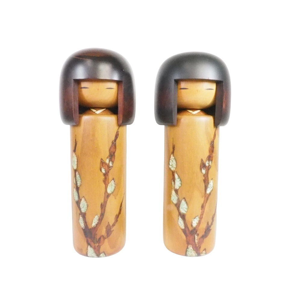 - しっとりとした手触りが魅力の逸品!昭和ビンテージ 伝統工芸 卯三郎創作こけし「春のねこやなぎ」二体セット 在銘あり 1980年代 SHI605