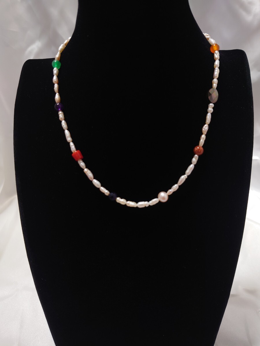 > 淡水真珠 アメジスト 茶金石 水晶 メノウ オリジナルデザインネックレス 淡水真珠ネックレス マグネット式 管理No.N-205